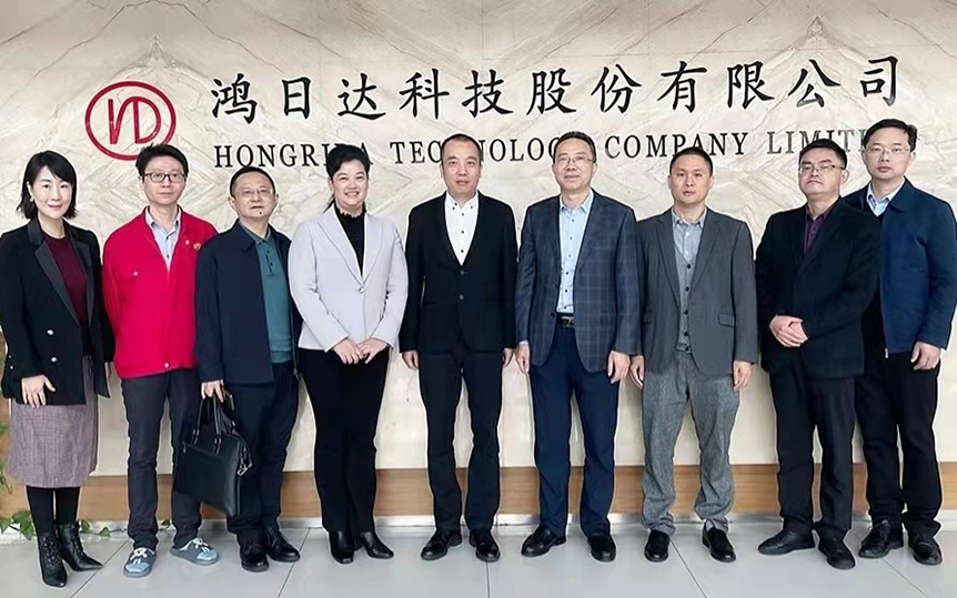 向文江、赵敏丽一行还实地参观了鸿日达科技股份有限公司的生产基地。校产学研合作办公室主任陈志刚、校友工作办公室主任何瑜、图书馆党总支书记曾周亮、城乡建设学院副院长(主持工作)黄雄伟、鸿日达科技股份有限公司98级机制模具班郭亮、周勇校友陪同走访考察。