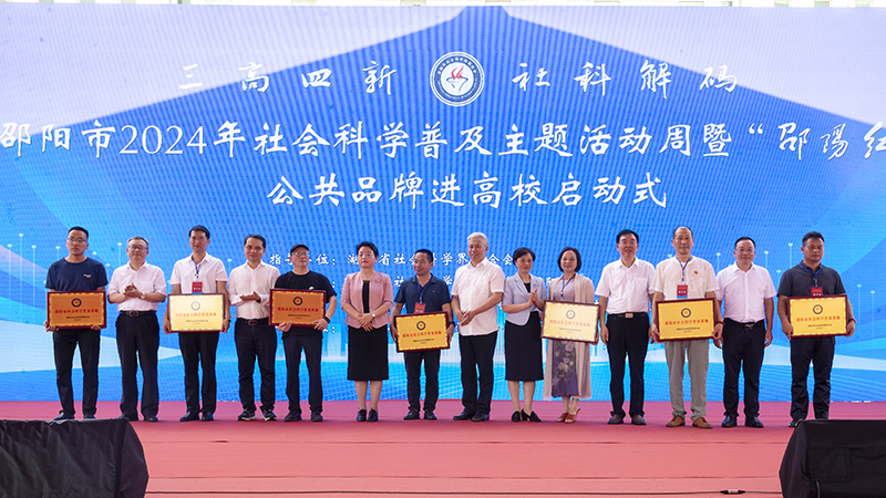 启动仪式上与会领导还为新建省级社科普及基地授牌“蔡锷故居”授牌,为13名全市第十七届社会科学优秀成果奖一等奖获奖代表颁奖,为10名全市首届“十佳”社科普及推广人颁奖,为7家2024年新建市级社科普及基地授牌,为全市首届“十佳”社科普及推广人颁奖,邵阳学院青年教师黄玉平作科普推广分享和精品思政课微宣讲。中央电视台星光大道月冠军、邵阳本土著名歌手张映龙带来了优秀社科普及歌曲《猪血丸子香》,中央电视台《寻找刘三姐》第三季全国总冠军、邵阳本土著名歌手王馨演唱歌曲《茶香邵阳红》,我市优秀青年歌手李维英为大家献上优秀社科普及歌曲《美丽邵阳》。仪式后,出席嘉宾与领导跟随着导引依次参观了“邵阳红”公共品牌进高校社科普及展览,与负责人亲切交流,详细了解了特色产品的展销情况。