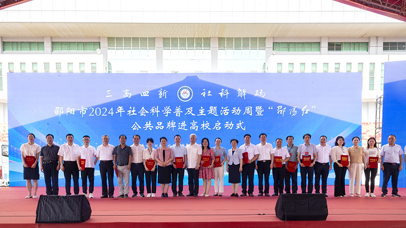 6月13日下午,2024年邵阳市社会科学普及主题活动周暨“邵阳红”公共品牌进高校活动在我校七里坪校区田径场正式启动,省社科联二级巡视员刘平出席并讲话,校党委书记宁立伟致欢迎辞,市委常委、宣传部部长杨志慧,市人大常委会副主任罗玉梅,副市长易洪海,市政协副主席、市科协主席、副校长刘承智,党委委员、副校长蒋剑平出席启动仪式。