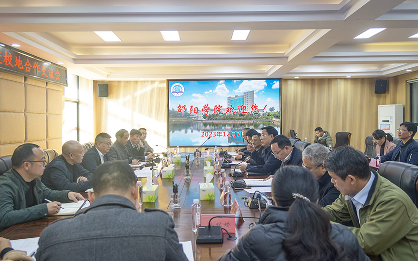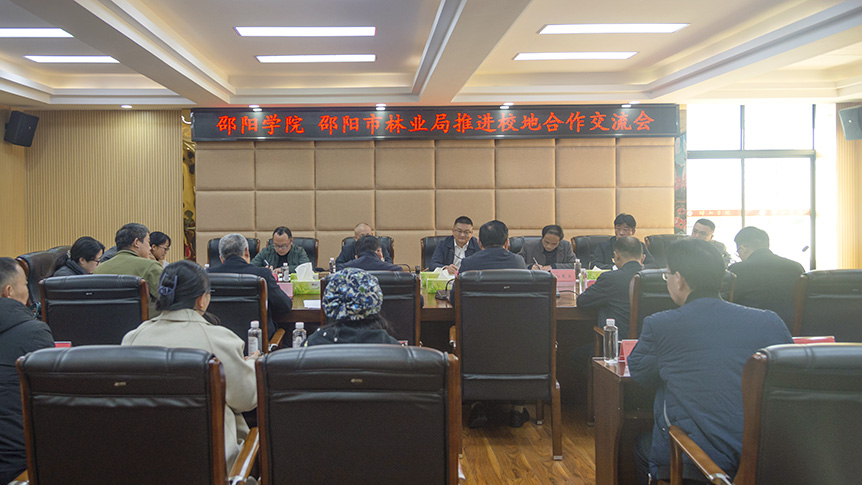 12月7日下午,邵阳市林业局党组书记吴名蒙一行来我校洽谈校地合作。合作交流会在七里坪校区一办公楼三楼会议室举行,校党委书记宁立伟出席并致辞,校党委委员、副校长蒋剑平主持会议,科技处及相关二级学院负责人参加会议。