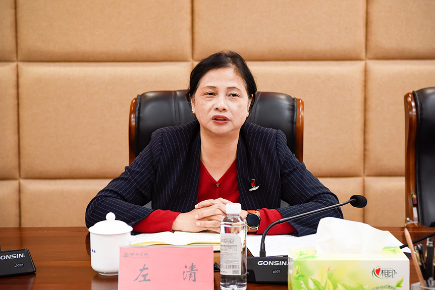 左清对我校在开展学科建设和科技成果转化工作中取得的成效给予了充分的肯定,并针对我校今后的工作提出了指导性意见。她强调,要进一步凝心聚力,团结一致,形成共识,共同为学校的健康发展贡献力量。要进一步突显重点,工作要实、要聚焦,要加大对政策的研究力度,对接国家发展战略,对接湖南“三高四新”发展战略,充分发挥校友力量,进一步服务地方经济社会发展。要进一步注重未来,以高质量发展为主题,久久为功。