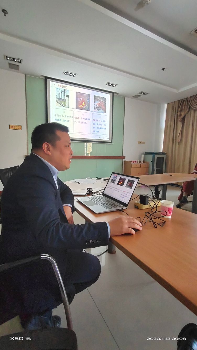 针对钢厂配电网运行工况,唐院长从谐波产生机理、治理技术与方案、电力滤波技术与原理等方面进行了详细阐述,还介绍了近几年效果较好的混合型有源电力滤波器的研制与应用情况。讲座过程中,企业技术人员就生产中遇到的电缆头短路、互感器爆炸等实际故障工况,阐述个人分析观点,向唐院长请教,现场气氛活跃,友好。