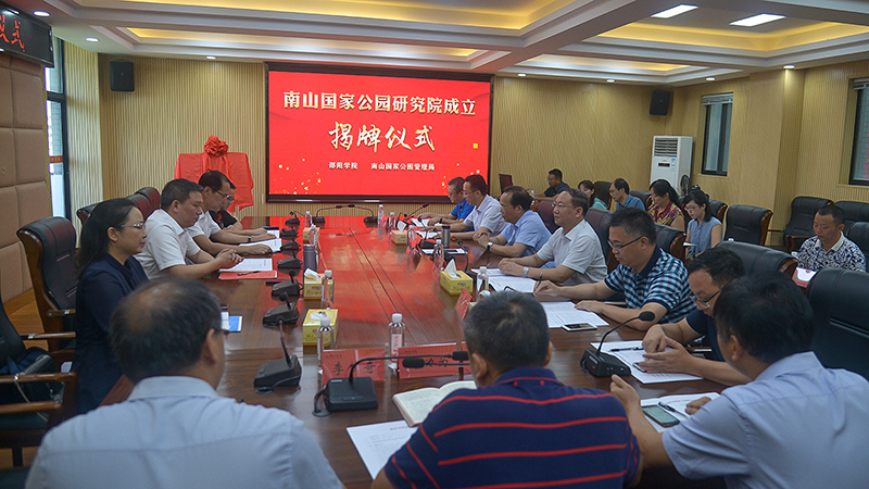 在揭幕仪式上,邵阳学院校长彭希林宣读研究院成立文件,并介绍研究院组建情况。彭希林随后在讲话中指出,国家公园建设是贯彻习近平总书记生态文明思想的重大举措,而南山自2015年进入首批国家公园体制试点区名单,是具有开创性和奠基性意义的。同样,此次共建研究院,组建专家团队,发挥学校优势,通过校地合作联合开展科学研究和人才培养,助推南山国家公园建设发展,也充分体现了邵阳学院扎根于邵阳大地、服务地方经济的使命担当。